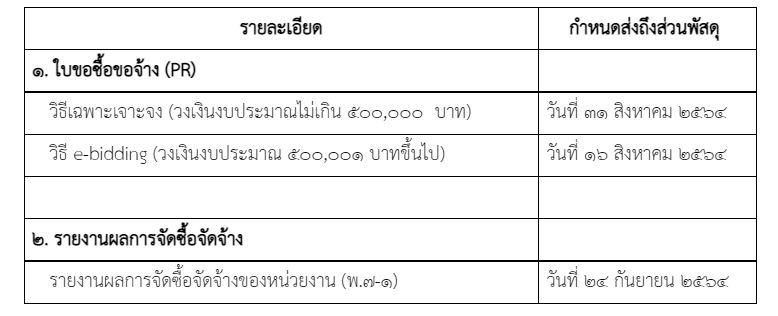 กำหนดส่งเอกสารใบขอซื้อขอจ้าง ก่อนสิ้นปีงบประมาณ 2564 / ประชาสัมพันธ์พัสดุ / By waleerat kongsawat Post Views: 471 เพื่อให้การดำเนินการจัดซื้อจัดจ้างทุกหมวดรายจ่าย สำเร็จภายในปีงบประมาณ พ.ศ.2564 ส่วนพัสดุขอกำหนดระยะเวลาการนำส่งเอกสาร เวียนแจ้งทุกหน่วยงานเพื่อทราบ ดังนี้